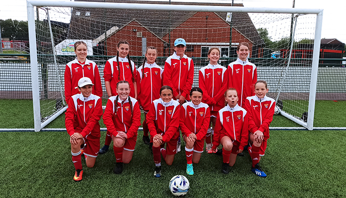 U12 girls sporting new training jackets thanks to Scott Beckett