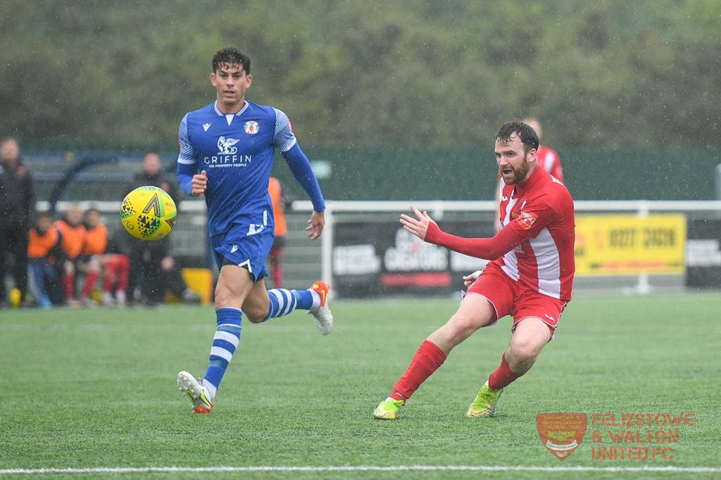 The Seasiders welcomed back Jordan Matthews, Henry Barley and Lamell Howell to the starting eleven, but were without the injured Curtley Williams, Josh Hitter and Harry Knock as they looked to extend their winning run of away games to three. Felixstowe are getting used to life on the road, last Tuesdays home match postponement, (Heybridge Swifts) creating a six week, five game road trip and meaning just two home league games played in the first nine weeks of the season. Felixstowe had two promising young players on the bench for this Isthmian league fixture, Tommy Smith and Darius Petrea earning their call up to the first team after impressing for the U18’s and U23’s recently.