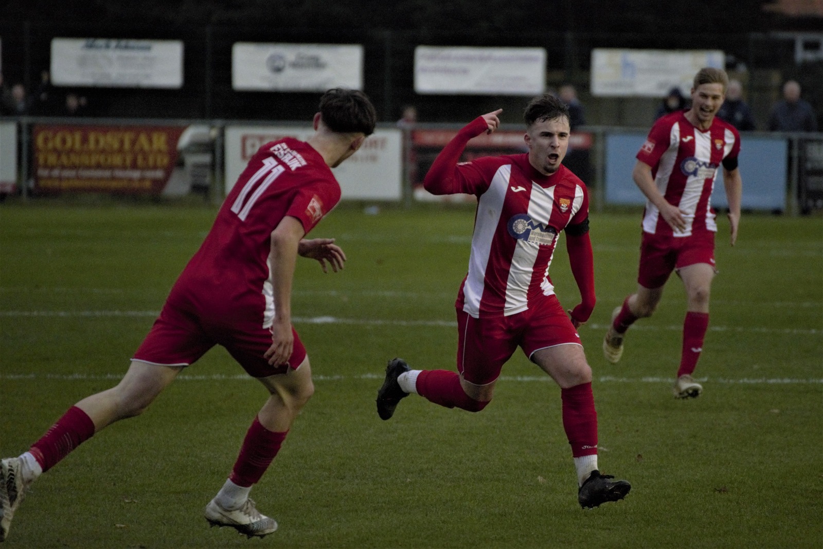 Peterborough were well supported and their fans were soon celebrating the opening goal, Ryan Fryatt rising highest to nod in a free kick on five minutes after a defensive mix-up for Felixstowe. The atmosphere was understandably muted by the early goal and the knowledge that Step 3 leaders Peterborough had scored 41 goals in 13 league matches this season clearly led to thoughts of a long afternoon ahead. The Turbines were seeing more of the ball but Felixstowe were starting to find their feet in the game and were matching their opponents in all areas of the pitch. Zak Brown did well on 8 minutes to create space and cross to the far post, unfortunately a defender cleared for a corner before Ollie Canfer could connect. Sam Nunn saw his goal bound header saved by the goalkeeper from the corner as Felixstowe continued to press for an equaliser. It only took until the 17th minute for that equaliser to appear and it was that man Henry Barley again weaving his magic to score a stunning goal, winning the ball on the right, cutting inside and sending a rocket of a shot, as straight as an arrow into the top left corner. The goal settled Felixstowe further as the confidence grew on and off the field. Peterborough were quick going forward with their three-pronged attack but were not troubling Danny Crump too much in the home goal. Lewis Hilliard spun in the box to shoot on 21 minutes but Armani Schaar was there to clear the danger. Felixstowe had a golden chance to take the lead on 24 minutes, Charlie Warren doing brilliantly on the left to cut in and fire towards goal, the keeper could only block on the line and clear to Zak Brown whose shot was cleared off the line by two defenders. The away side upped the pressure as the first half drew to a close but could only create half chances, Sam Nunn heading out for a corner from a dangerous cross and Fryatt heading wide when positioned well at the far post as the whistle blew for half time.