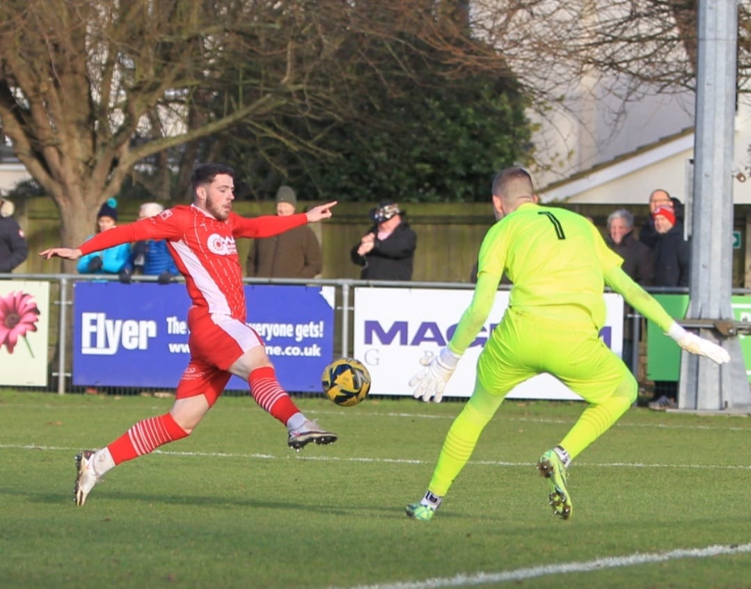 Stuart Boardley spoke after the match. “We were disappointing today, we were lethargic, we looked like we’d had a good Christmas! And that was a hard watch as we just didn’t have any tempo to our play, didn’t have any positivity or forward-thinking, it was just very very flat. You could argue that before the game that would be considered as two points dropped but at the end it’s probably one point gained as I thought Coggeshall were the better side. Their goal was disappointing to concede but Callum has gone on to save us so many times at point blank range to keep us in the game. We just huffed and puffed and it really was a poor showing, three weeks without a game is just not conducive to keeping yourself going, but no excuses, we weren’t at the races today and they were, and they’ve come here and got a point. If we had of performed anywhere near to our best we would have won comfortably here today, no disrespect intended to Coggeshall, but of course I’m disappointed to only take a point home as on paper and before the game it should really have been three points for us”.