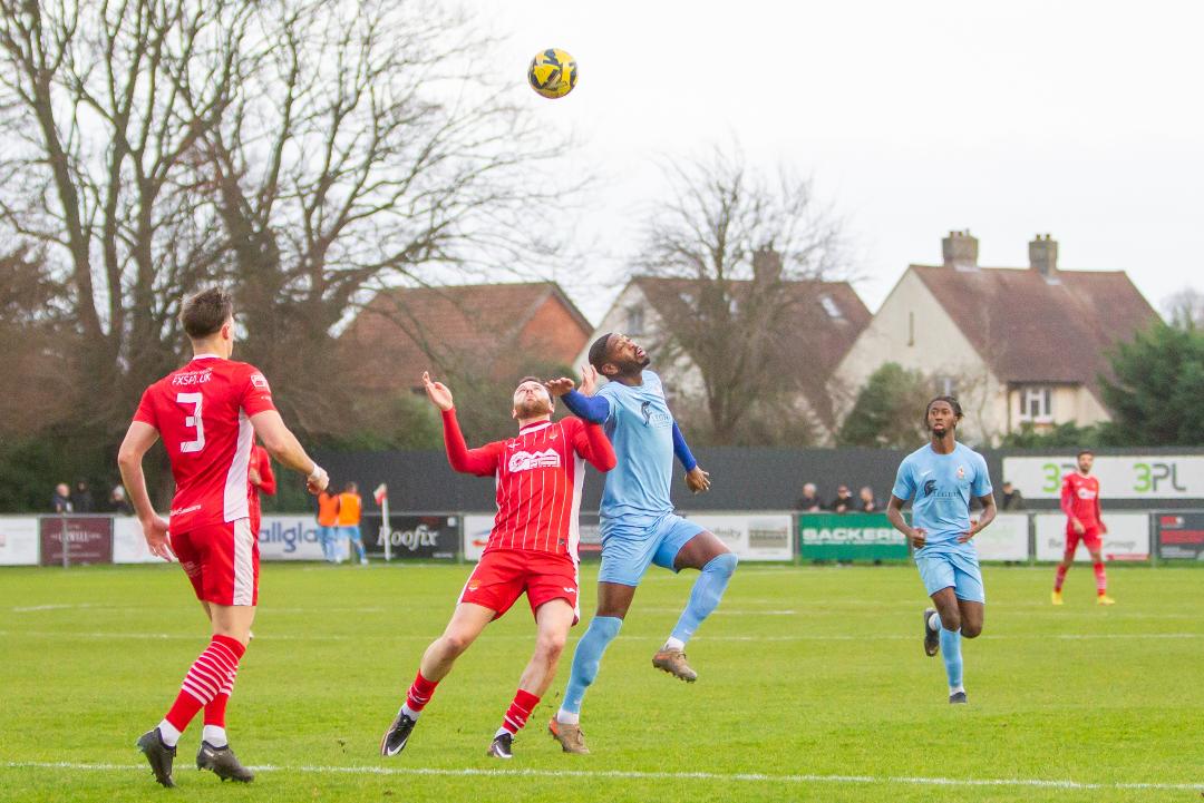 Felixstowe & Walton United made it 28 points from 30 at home this season with a 2-0 home victory over last seasons losing playoff finalists Brentwood Town. The stubborn and lively visitors had the best of the first half an hour but a George Clarke header on 33 minutes turned the match in Felixstowe’s favour and a Josh Hitter Free kick on 64 minutes settled the outcome and sent the Seasiders up to fifth place in the Isthmian North.