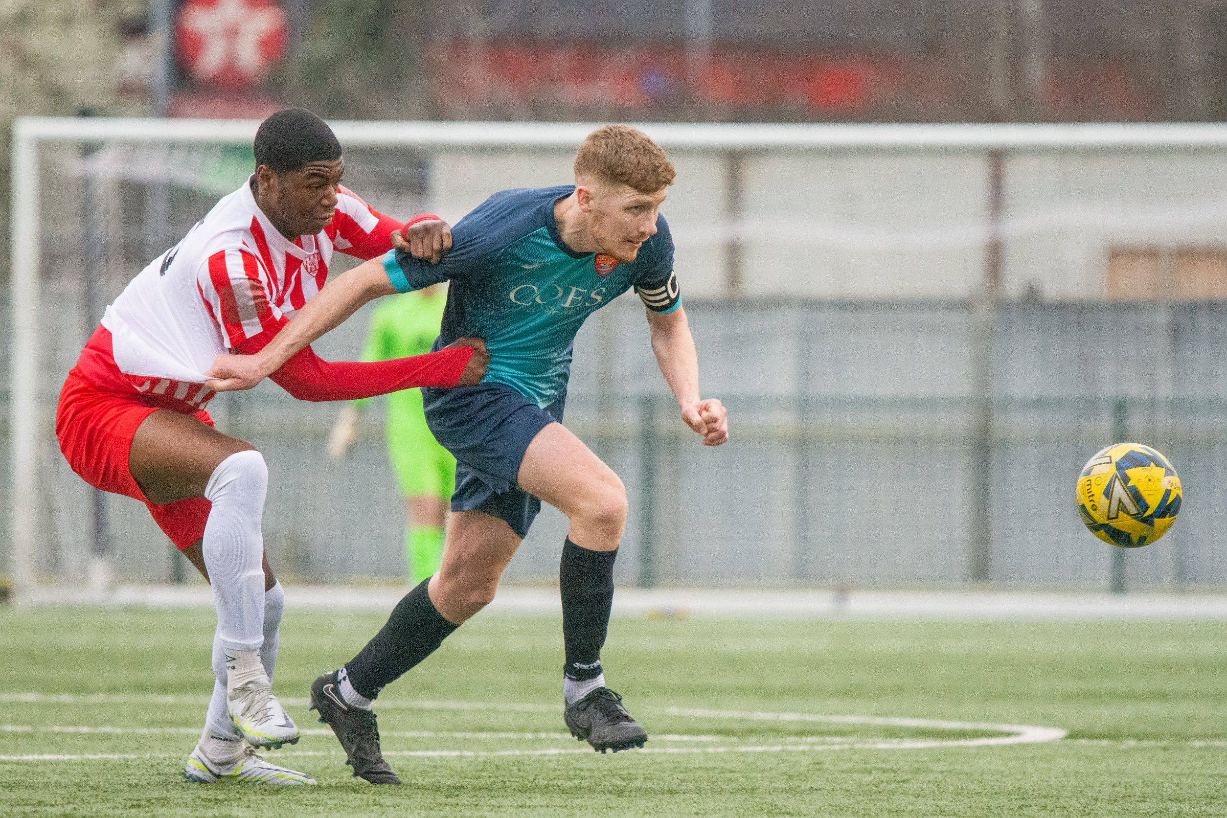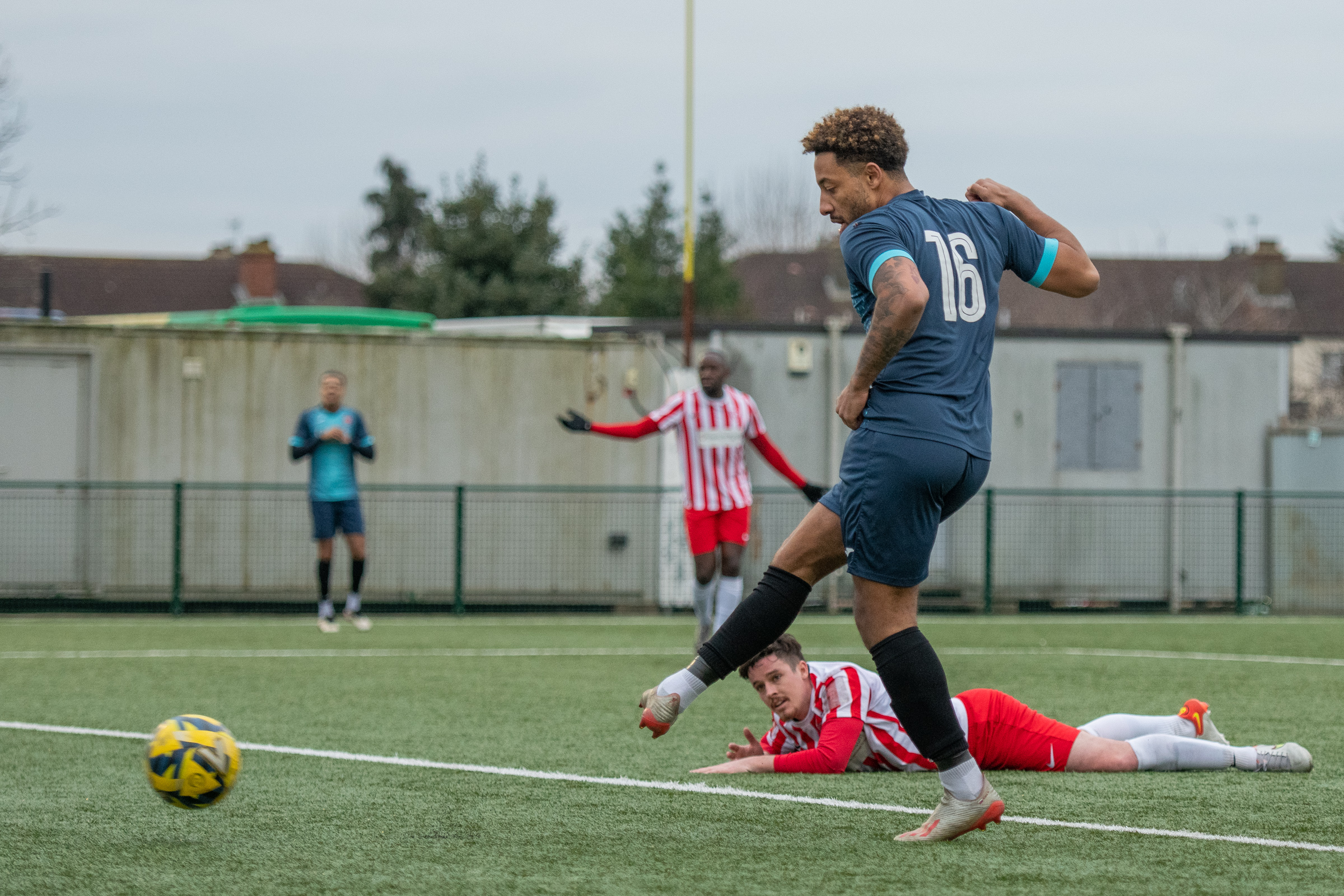 Felixstowe started brightly on the 3G surface of Haringey Borough, but often found the final pass lacking when moving forward. New Salamis were playing on the break with Remi and Mandla looking particularly dangerous with their pace. Mandla headed tamely wide on 7 minutes before Noel Aitkens was denied at the near post with a challenge preventing his shot hitting the target. Callum Harrison curled a free kick round the wall and just past the post on 12 minutes, then one of the home sides quick breaks found a gap on the right to allow Remi to slam the ball in from close distance. Aitkens sent over a wonderful cross from deep on the right shortly after, it found Fennell in the box, he took the ball down well, turned and shot but was denied by a last gasp block. Despite all their possession and passing football, it was the home side who again stunned the away support on 25 minutes as they took a two-goal lead, Felixstowe again unable to defend a break on the right and Ryan Hervel slammed the ball home from 15 yards. The Seasiders went close twice on 30 minutes, firstly a cross heading for Fennell was headed backwards by a defender and missed the goal frame by inches, and then Billy Holland saw his header tipped over the bar from the resultant corner. Joe Whight headed narrowly wide on 42 minutes but he was soon on the scoresheet, the assistant referee flagging for a clear handball from a corner as the referee blew the half time whistle. Salamis protests went overboard, as had been the case all afternoon, but Joe Whight stepped up and halved the deficit.