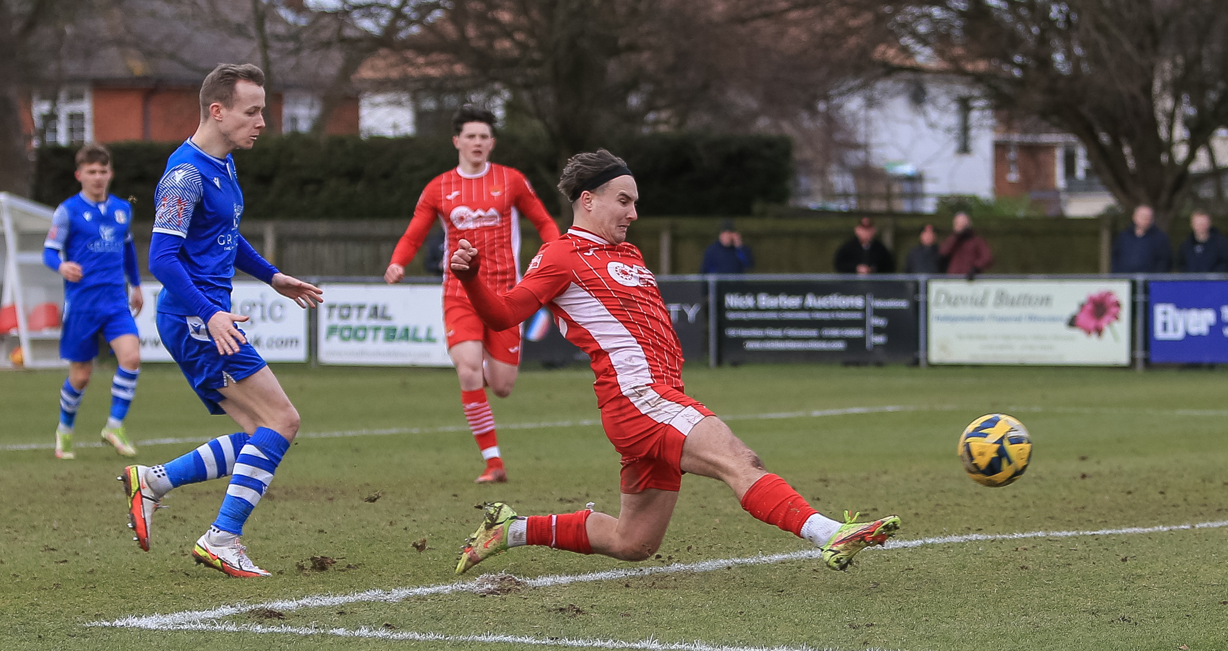 Felixstowe managed to control the second half and stop Grays from creating clearcut opportunities for the majority of the 45 minutes, the defensive foursome of Ainsley, Ottley-Gooch, Whight and Bennett showing their experience and game management skills to enable the Seasiders to take their one golden chance and the three points. Holland headed at the keeper on 53 minutes before the introduction of Charlie Warren led to the winning goal on 58 minutes, his break down the left and subsequent peach of a ball into the area could only be parried by Sambridge, Callum Harrison took the ball down, steadied himself, took out two defenders with a side-step and fired the ball into the roof the net from six yards, away from the grasping hands of the keeper. The majority of the 400+ crowd sensed a vital victory and were nearly treated to a second goal shortly after, Ainsley’s long-range drive just inches away from providing the cushion the supporters craved. Watts sliced a shot well wide from 15 yards as Grays finally showed up before Charlie Warren shot over the bar from a Ollie Canfer cross. Robinson then turned match-winner on 86 minutes, Campbell for Grays heading down towards the bottom corner, but Callum got down superbly to claw the ball around the post and denied the visitors a point in their final chance of the game. Felixstowe saw out the game comfortably from there to bounce back from consecutive defeats and stay firmly in playoff contention.