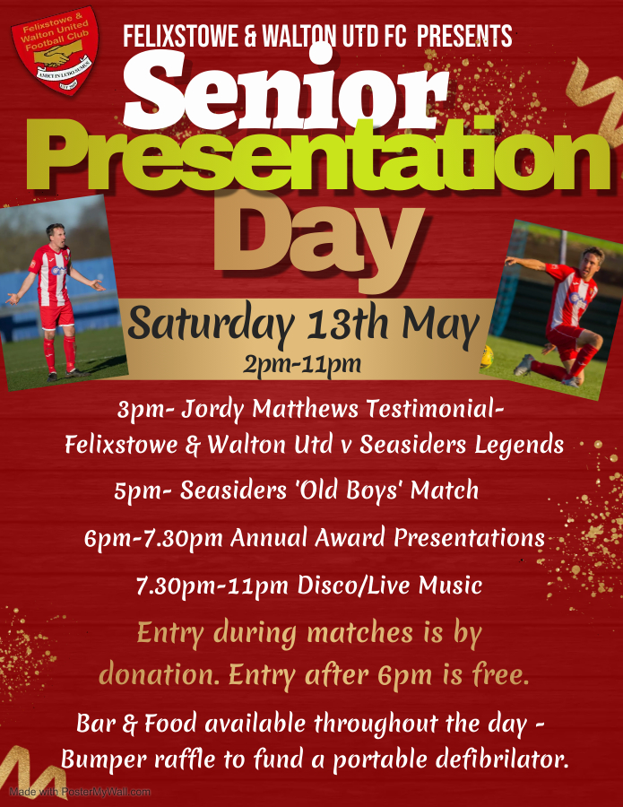 Saturday 13th May is the big day for your diaries with turnstiles opening at 2pm ahead of 2 very special matches.... starting with a well deserved Testimonial for Jordy Matthews. Jordy took a break from football last summer after clocking up the most appearances of any player in the modern era for the Seasiders (353!) but the man himself will captain a Seasiders Legends team against the current Felixstowe & Walton United team in a 70 minute game at 3pm.