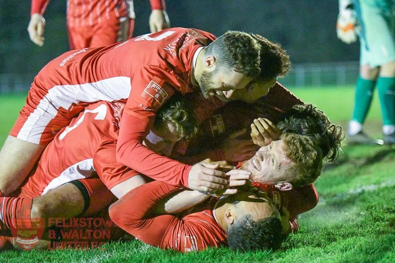 Felixstowe & Walton United moved back into fifth position with a 3-1 win at an in-form Basildon United on Tuesday. Leading from a Josh Hitter strike on 36 minutes, Felixstowe should have been further ahead before the home side took advantage of an error at the back on 74 minutes to equalise. The Seasiders showed great character to bounce back and dominate the remainder of the game and grabbed two goals in the process, Leon Ottley-Gooch heading firmly past the keeper on 81 minutes and Billy Holland nodding into an empty net after Zak Brown had struck the bar with his effort on 86 minutes. Basildon had a couple of chances in the first half from ricochets around the area and Josh Hitter, Noel Aitkens and Ollie Canfer came desperately close to second half goals as the three points were bagged. Canfer was taken to hospital after the match after suffering a nasty gash to his forehead towards the end of the match, he will be doubtful for Saturday’s trip to Bury Town and the second part of the Easter blockbuster weekend when Stowmarket visit on Monday.