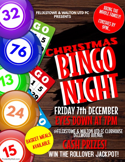 Friday 7th December - The Christmas Bingo - This has been moved from the 23rd November due to Ipswich Town on TV.