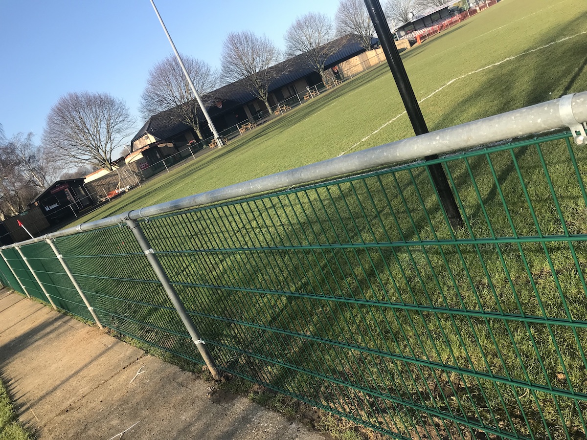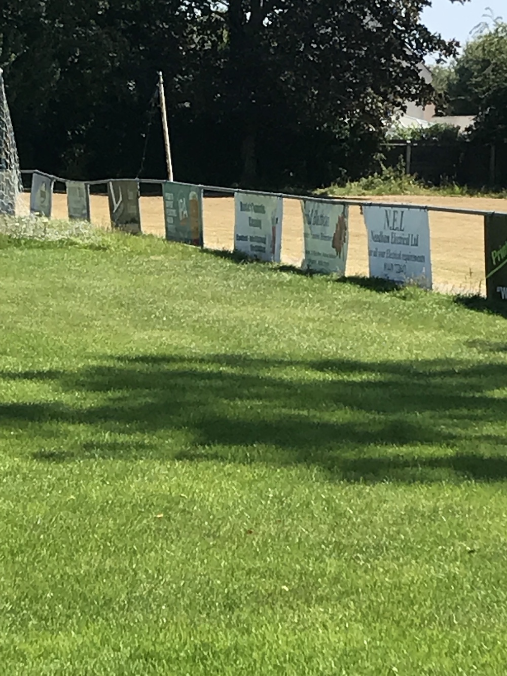 By Tuesday evening’s Suffolk Premier Cup victory over Hadleigh, most of the new post and rail system had been concreted in place. The old spectator railings were uneven and leaning over (pictured with signage attached). The new ones have been installed slightly taller (1.1m is the recommended height) and this gives a more comfortable height to lean on.